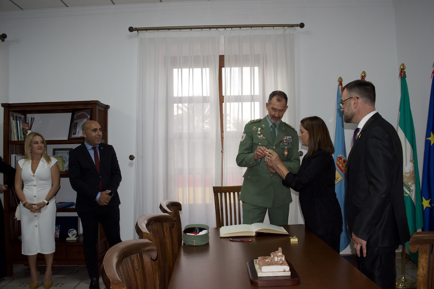 A la llegada del Coronel Jefe del Tercio Don Juan de Austria Don Javier McKinley de Castilla a quien acompañaban el Capitán Don Ignacio del Junco Jurado, el Suboficial Mayor Don Raúl Peña Salas, el Cabo Primero Don Pedro Lobato Núñez y Caballeros legionarios de la VII Bandera Valenzuela, fueron recibidos en el Ayuntamiento por la Alcaldesa Doña María del Mar Alfonso Pérez y la Corporación Municipal. En la recepción estuvieron presentes el Hermano Mayor de la Cofradía José Manuel Llort Granero y miembros de la Junta de Gobierno.
