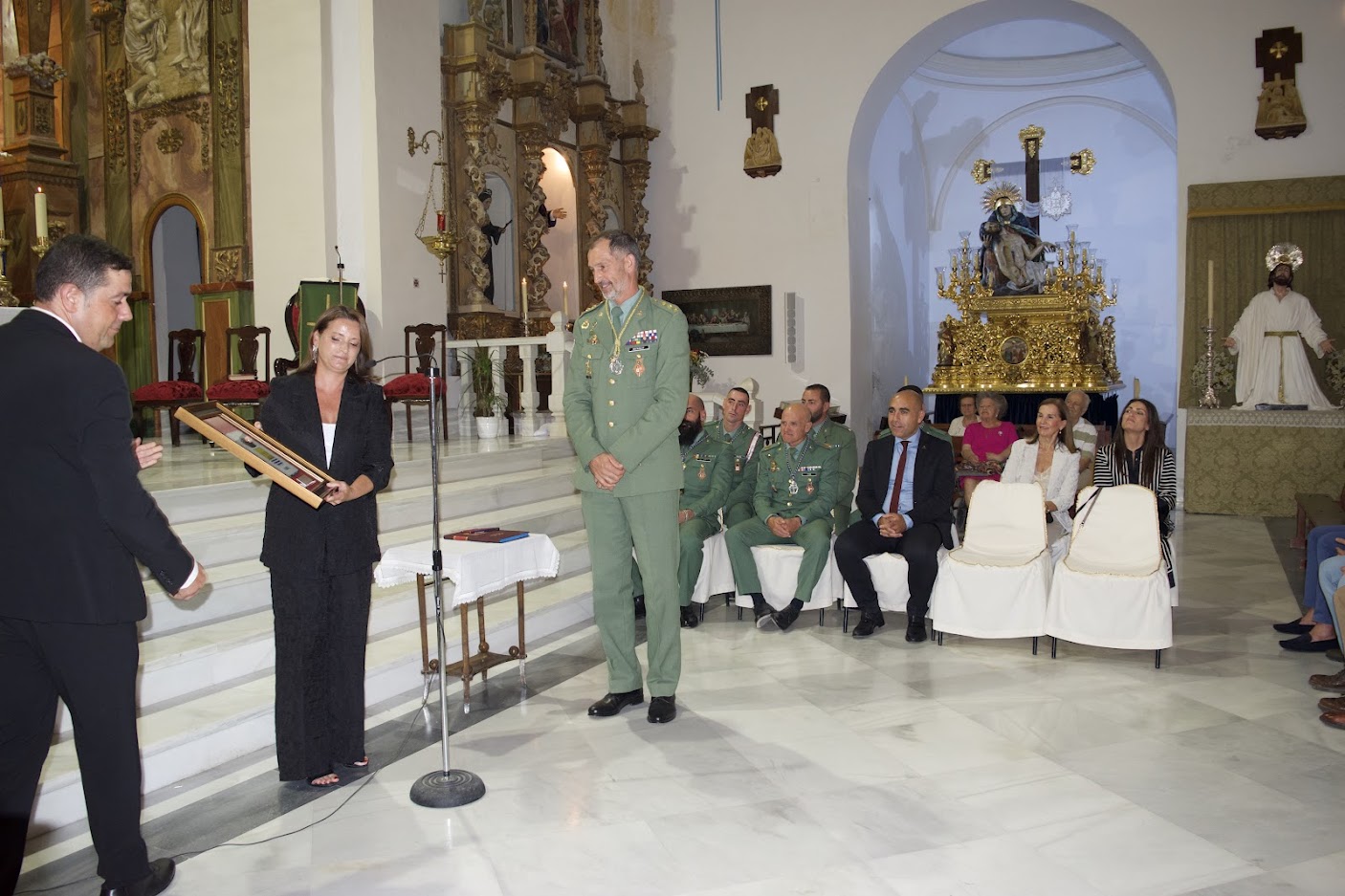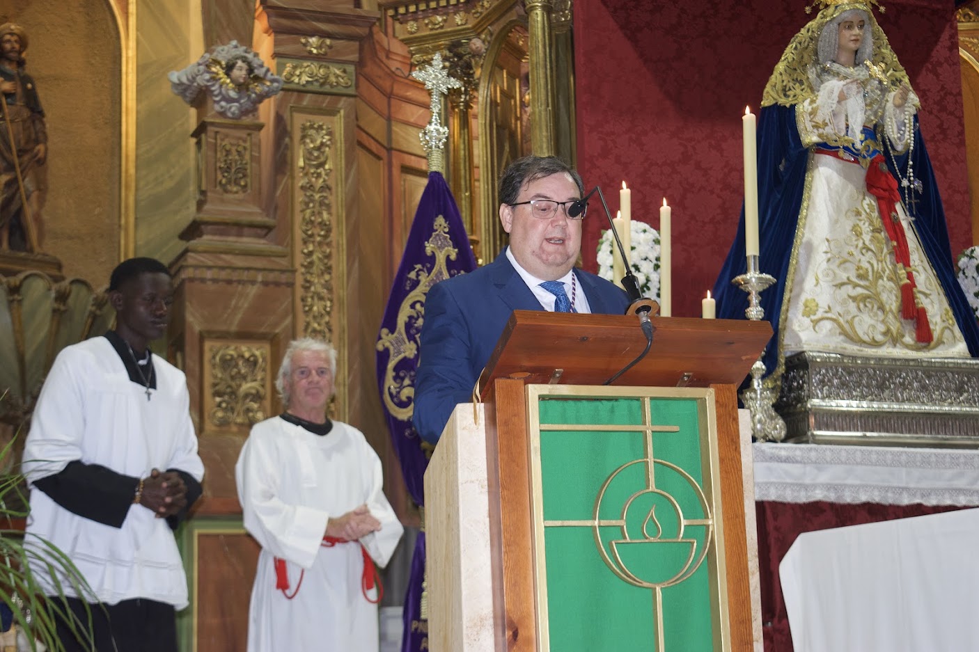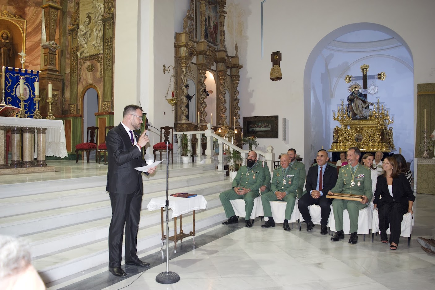 El acto lo ha presidido Doña María del Mar Alfonso Pérez, Alcaldesa de la Villa, acompañada por el Hermano Mayor, José Manuel Llort Granero y por el Párroco de Santa María Don Antonio José Villegas Romero con presencia de Don Antonio Jesús Saldaña, Párroco de la Concepción.