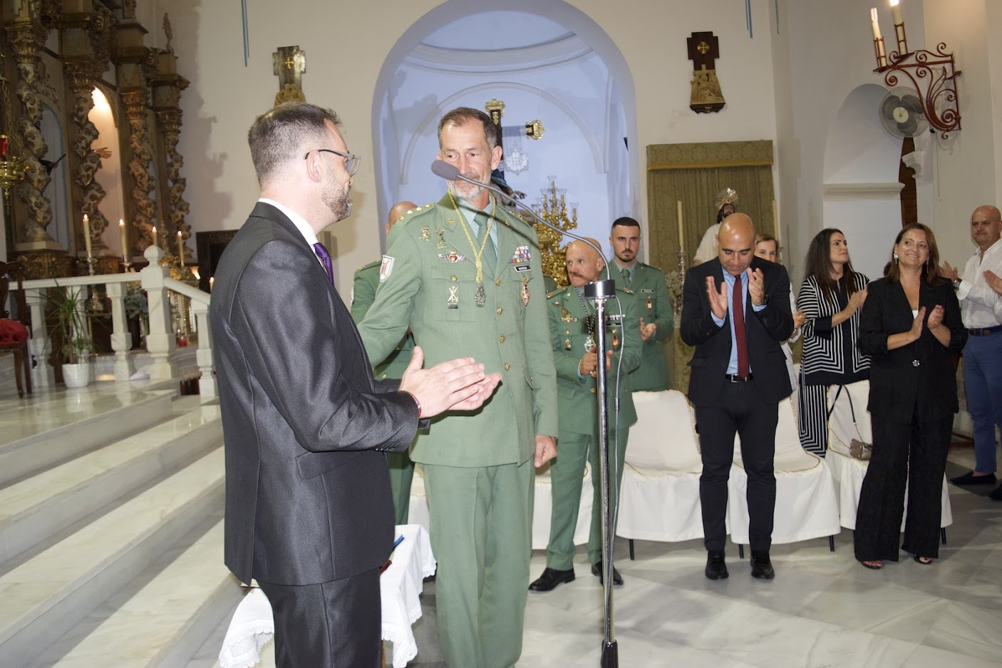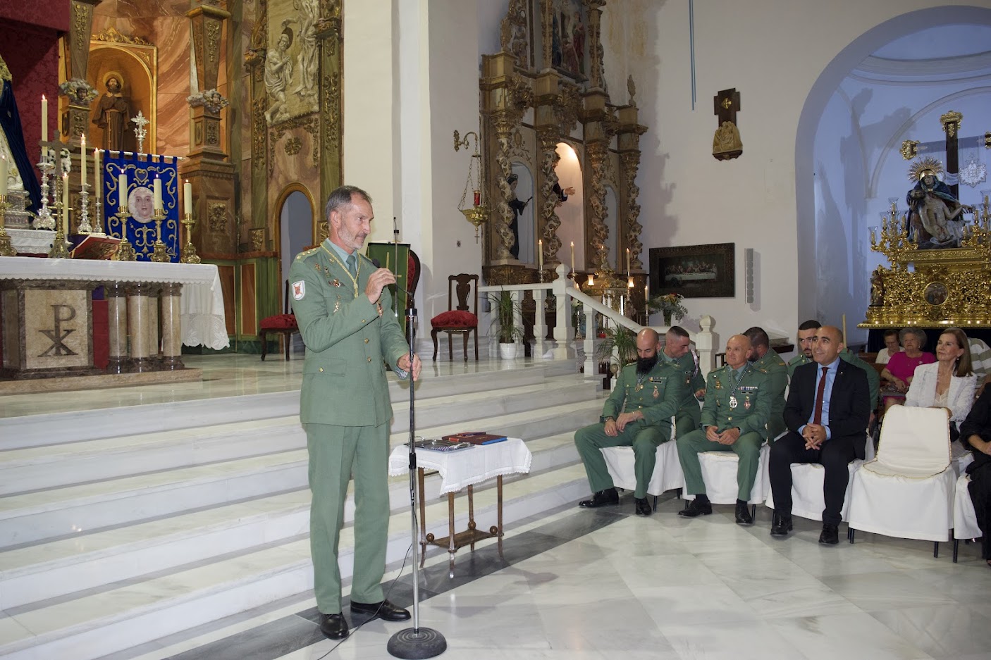 A continuación, Don Antonio Jesús Saldaña Martínez procedió a bendecir las Medallas de la Cofradía. “Esta Medalla es un signo de fe y compromiso. Representa a nuestras Sagradas Imágenes y es el recuerdo de la fraternidad que nos une. Nos identifica como hermanos de la Cofradía”. Estas palabras precedieron a la imposición de estas distinciones a los Oficiales, Suboficiales y Caballeros Legionarios de la Legión.