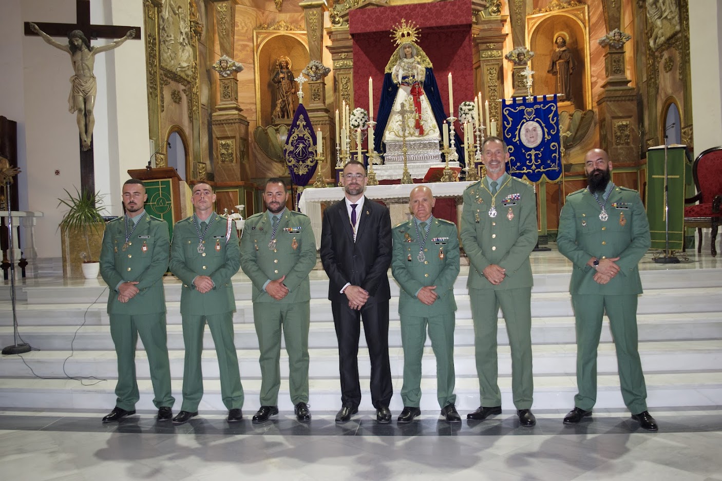 El Hermano Mayor José Manuel Llort acompañado del Vicehermano Mayor Pedro J. García Sánchez, impusieron la Medalla de Hermano Mayor al Ilustrísimo Sr. Don Javier McKinley de Castilla, Coronel Jefe del Tercio Don Juan de Austria, III de La Legión, y la Medalla de Hermano a los demás miembros de la Legión Española que acompañaban.
