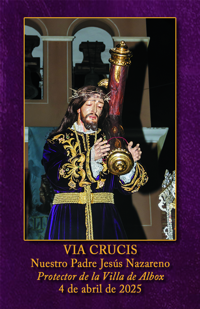 Organizado por la Cofradía de Jesús Nazareno, en las Estaciones del Vía Crucis participarán las Parroquias, las Cofradías y las Entidades Locales, como muestra inequívoca de veneración al Señor, Hijo de Dios vivo, y como ejercicio de piedad y de devoción al declarado Protector de la Villa de Albox.
